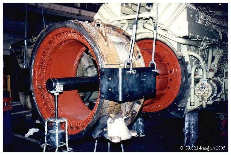 Lors de l'accouplement de l'alternateur des moteur AGO V16 équipant les CC 72000, le rotor et monté en premier et ensuite le stator vient le recouvrir.