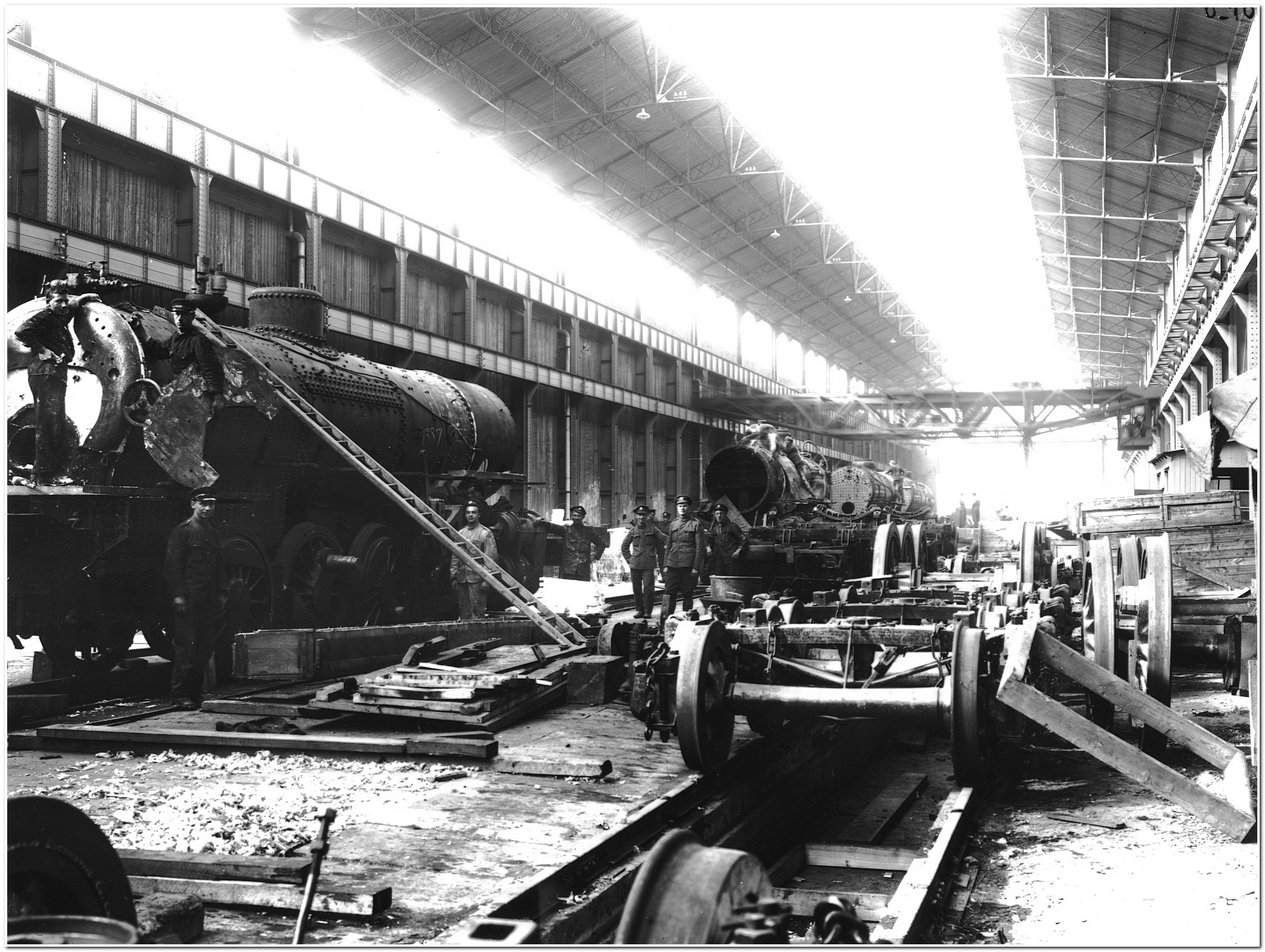 Premières réparations de locomotives par les troupes britaniques en 1917.