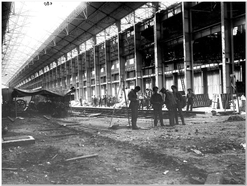 Aménagement du hall "B" en Juin 1917. Le sol est encore en terre battue.