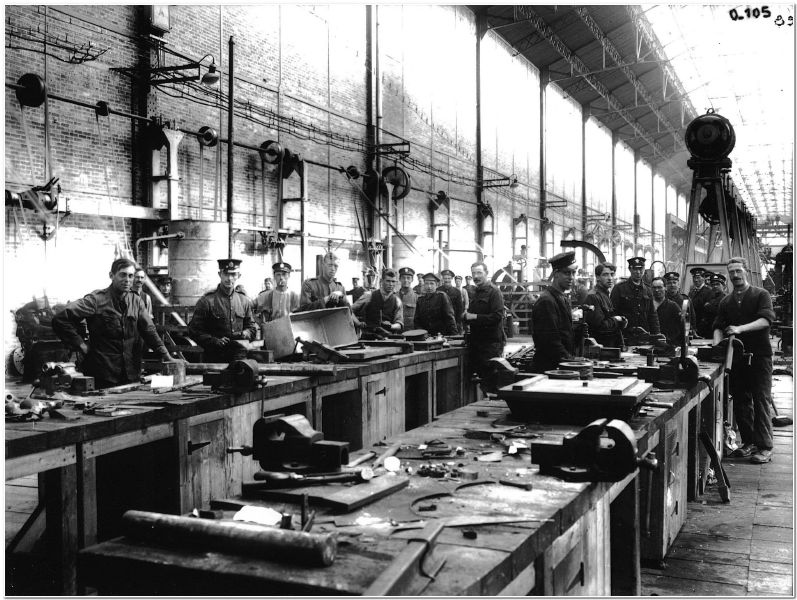 La préparation des éléments de locomotives dans le hall "B" en juin 1917