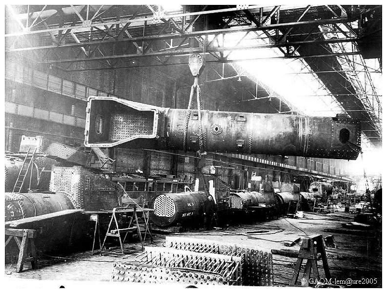 Manutention d'une chaudière au pont roulant dans le hall "A" avant 1939