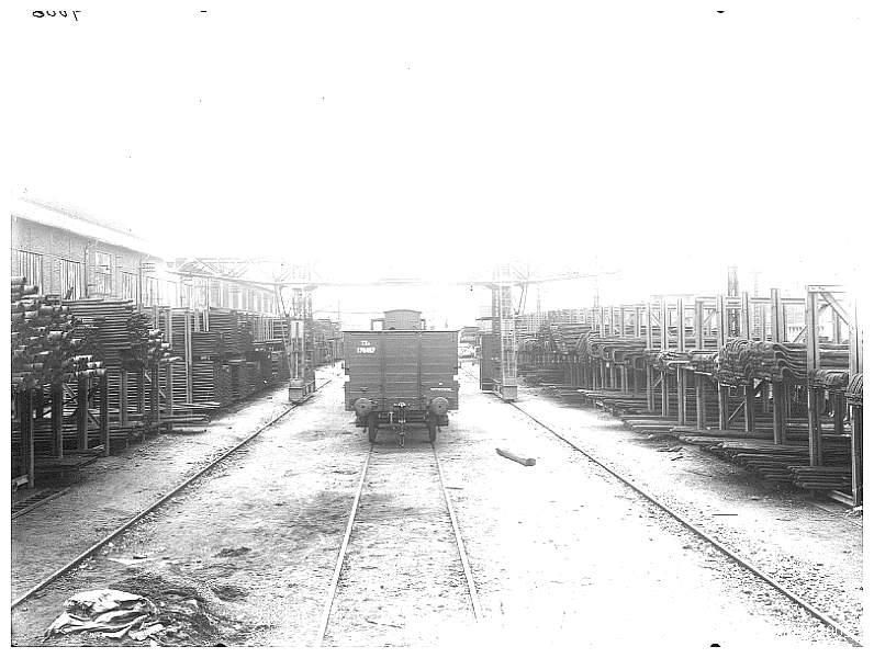 De chaque côté de la voie, sur laquelle circule un pont roulant, les diverses tuyauteries nécessaires à la réparation des chaudières avant 1939