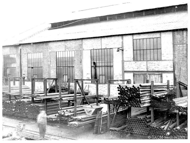 Stockage des tuyauteries le long de l'atelier des forges avant 1939
