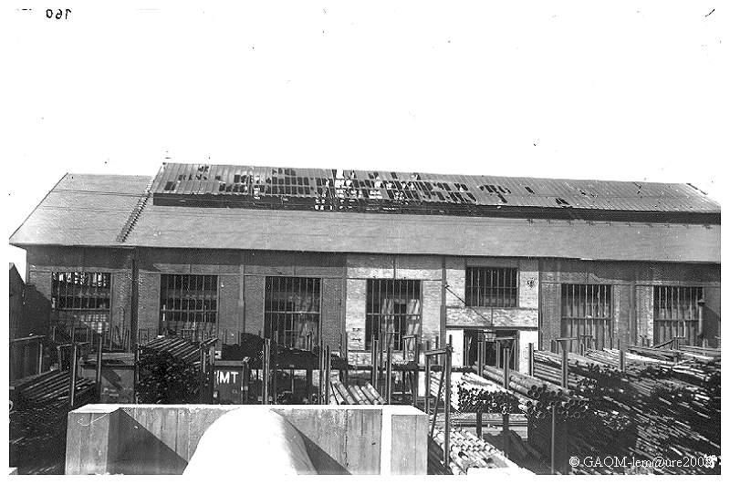 L'atelier des forges côté voies. Au premier plan un abri en béton et derrière, le parc à tubes.