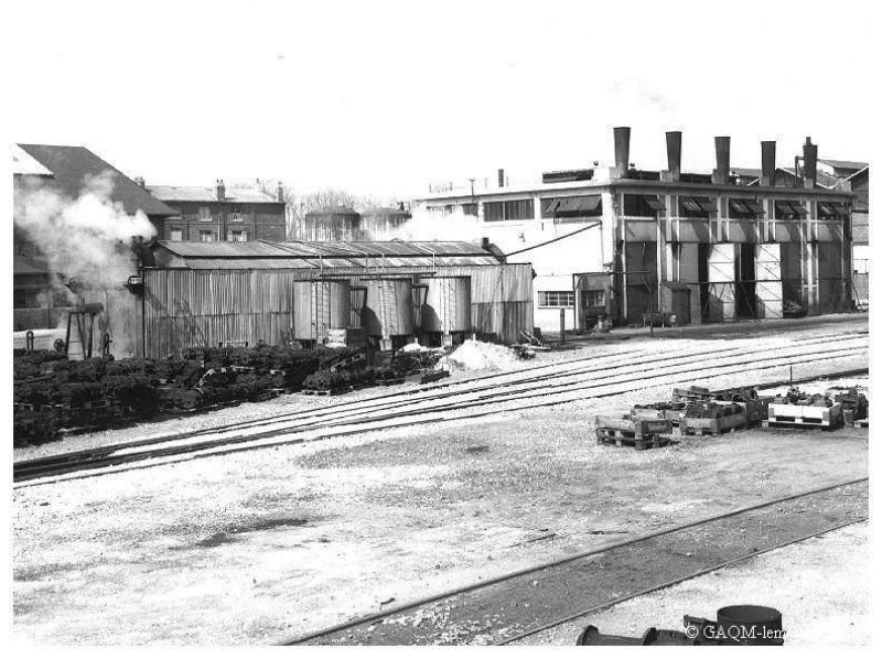 Le bâtiment dit de la "Babcock", à droite, renfermant 5 chaudières fixes.A gauche le bâtiment de lessivage des pièces avant expertise.