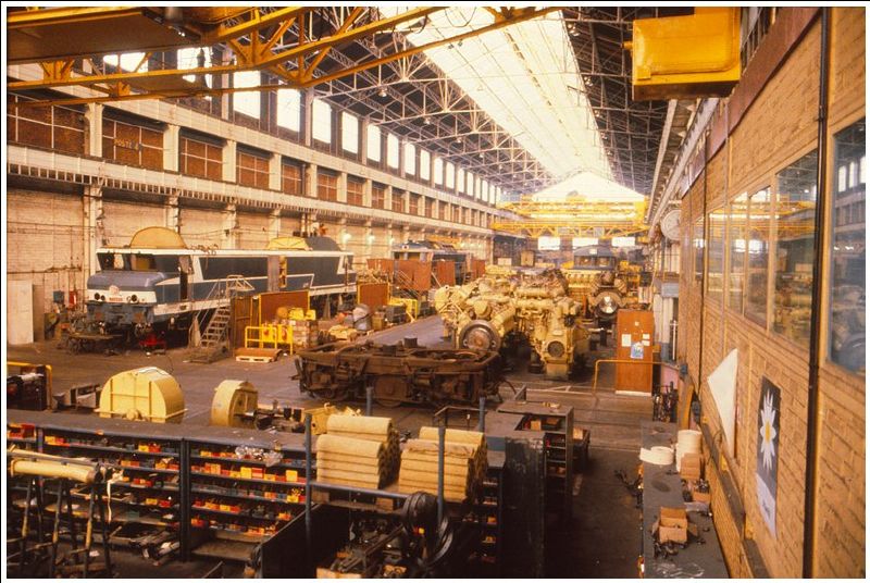 On remarque au second plan le parc où sont stockés les moteurs en attente de GP ou d'alternateur.