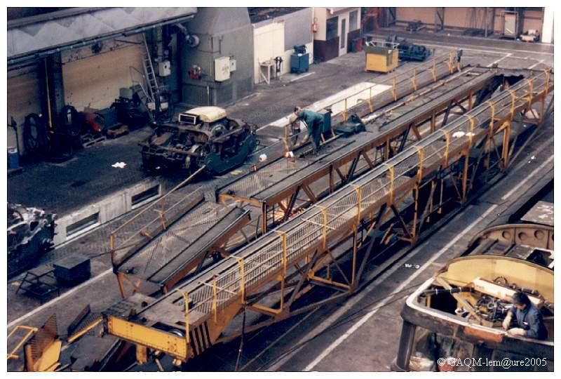 Un des ponts roulants de 8 tonnes du hall "C", après 70 ans de bon et loyaux services, est découpé.