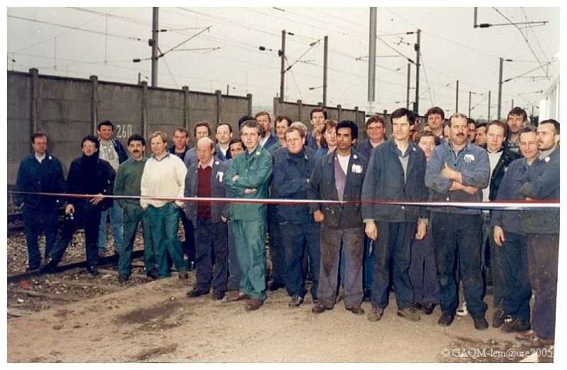 Derrière le cordon tricolore, les agents de Quatre Mares attendent le moment de l'inauguration de la ligne. Il faut dire que l'arrivée des locos électriques est un espoir d'avenir potentiel.