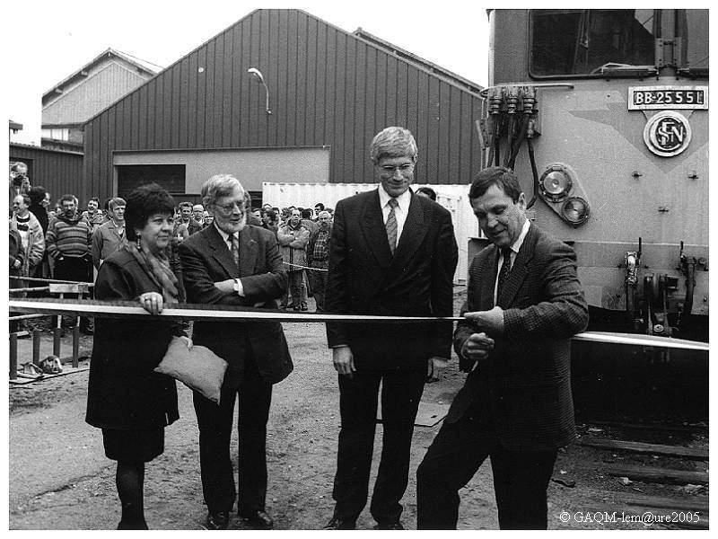 Le Directeur de Quatre Mares, Monsieur Daniel Barre, coupe le cordon de l'inauguration devant la BB 25551.