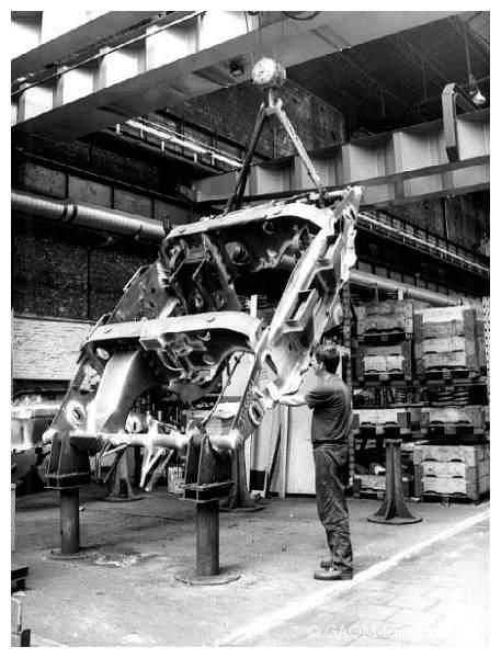 Retournement d'un châssis de bogie dans le hall "A"