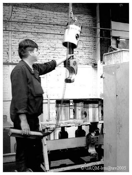 Mise en place d'un attelage (Piston + Bielle) sur un moteur AGO V16 dans le hall "B"