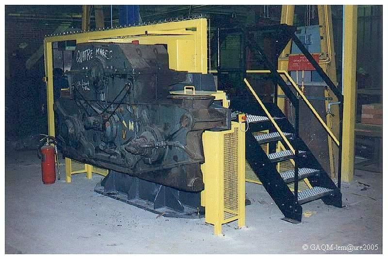 Bloc de transmission d'une BB 25000 sur un banc d'essai. Remarquez sur le côté les indicateurs de réduction "V" et "M"