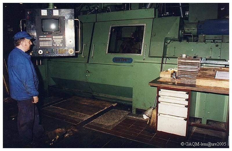 Le "RAFAMET". Tour à reprofiler les roues. Les deux roues sont usinées en même temps.