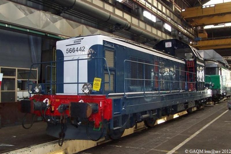 En voie de sortie, la BB 66442 vient de bénéficier d'une révision générale (RG). Les BB 66400 sont le dernier développement de la famille des BB 66000. Elles ont le même moteur MGO V 16 BSHR de 1400 ch que les BB 66000, mais elles sont équipées d'un alternateur permettant de chauffer électriquement les trains. La suspension secondaire n'est plus à ressort hélicoïdaux mais à blocs sandwichs.