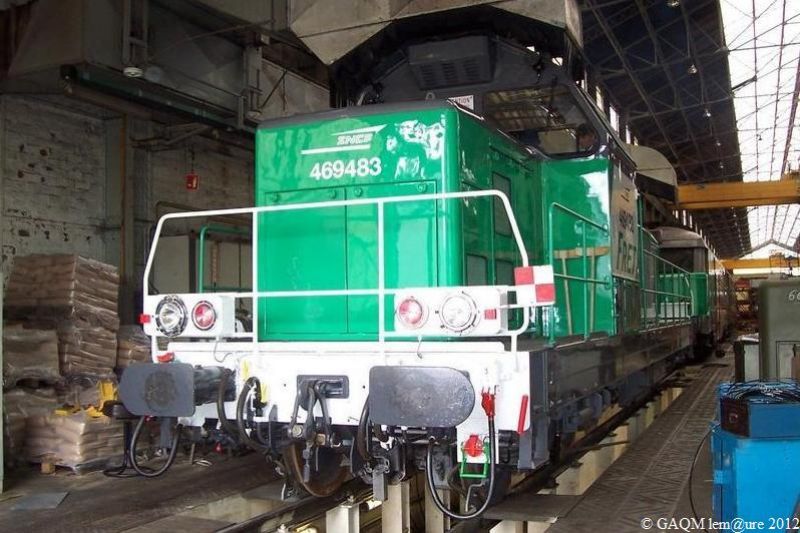 BB 69483 en livrée Fret. Les BB 69400 sont des locomotives issues de la rénovation et remotorisation de BB 66400 en cours pour l'activité Fret de la SNCF.