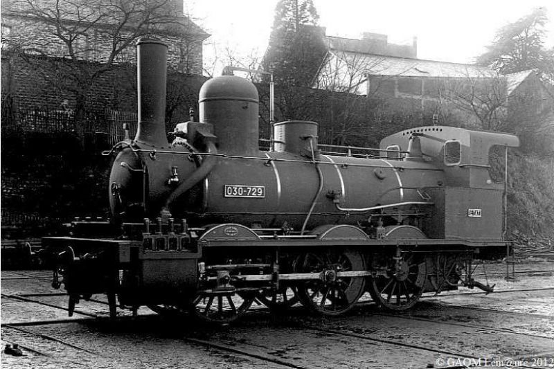 030-729 Etat. A simple expansion, 2 cylindres,distribution par soupapes système Lentz. Série 030-577 à 860 (ancien 1904-2244 Ouest). Construite entre 1867 et 1885.