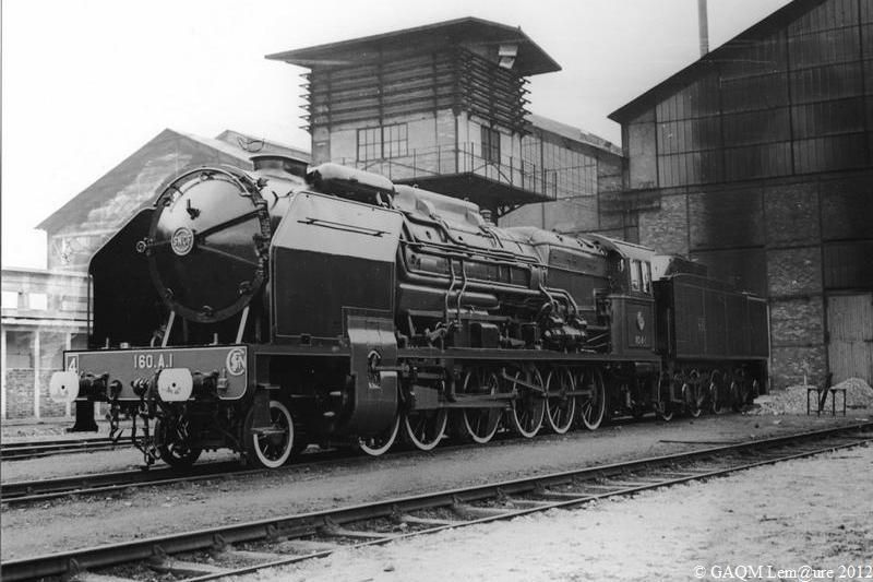 La 4-160 A 1 était un prototype de locomotive à vapeur qui fut étudié par la Compagnie du chemin de fer de Paris à Orléans sous la direction d'André Chapelon en 1935. Ce fut l'unique Centipede de la SNCF. Ici dans la cour côté Rouen en avril 1947.