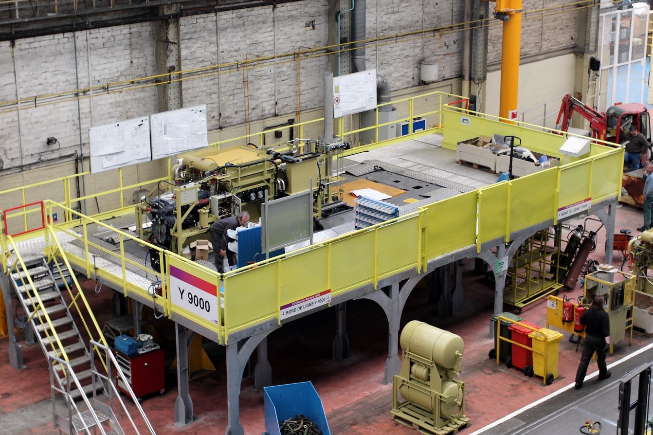 Petit a petit les éléments reprennent leurs places sur le châssis. Ici sont mis en place le moteur diesel, le bloc de refroidissement et le bloc de turbo-transmission.