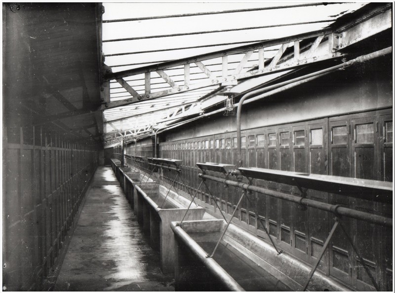 vitrages éclairant latéralement les ateliers. L’eau des lavabos est chauffée en